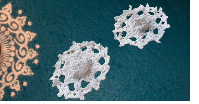 Unique lamp mat designed with origami-style crochet folds. Clean finish matches any setting. Comes in sets of 2.